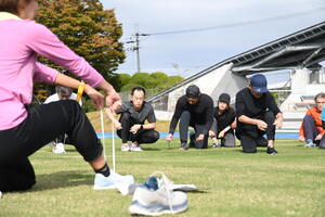 両日とも天候に恵まれ、爽やかな秋晴れの下、ランニングをする上での大事なポイントやシューズの正しい履き方、効率の良いランニングフォームをミズノ株式会社の専門講師に指導していただいた後、実技トレーニングを実施しました。